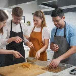 Speaker C:Wel, ik moet eerlijk zijn, ik heb eigenlijk op school wel koken gehad, omdat ik in mijn richting, omdat dat een vier uur was per week, dat we dan eigenlijk toch met de klas samen... Wij hadden kleine klasjes, want ik heb in het bijzonder onderwijs gezeten. Daar hebben we toch Echt wel ook een beetje de focus gehad op zelfstandig worden. Dus de paar vakken die je dan een beetje wegwijs maakt in het strijken en zo ook. Om even een beetje te schetsen. En zo is dat gewoon ontstaan dat er dan eerst bijvoorbeeld begonnen werd met hoe maak je een pudding? Hoe maak je soep? En iedereen had dan eigenlijk Een gerechtje. En in het begin was het heel veel ondersteuning door de leerkracht. En dan had je ook een kookexamen. En dat heeft mij wel geholpen om, ook als ik alleen ging wonen, te zeggen van ik ga dat niet wegsmijten. Ik onderhoud het. En zo... ben ik eigenlijk altijd wel een beetje aan het koken gebleven. Sommige periodes meer dan anderen. Maar ik denk nog steeds niet dat ik het verleerde.